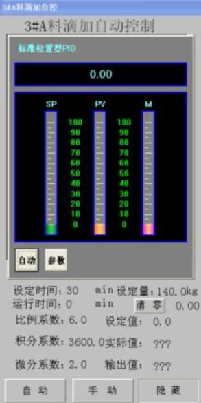 6. 操作員手動點選界面內(nèi)反應(yīng)釜,進(jìn)入自動控制界面,例:自動滴加,在溫度實時曲線界面。在時間、滴加量設(shè)定行,對反應(yīng)所需達(dá)到量按照不同工藝要求進(jìn)行設(shè)定。點選手動自動按鈕選至自動狀態(tài),則整個過程自動滴加,依據(jù)現(xiàn)場實際情況可點選手動狀態(tài)適當(dāng)調(diào)節(jié)更精確的實現(xiàn)現(xiàn)場的調(diào)節(jié)效果。(參數(shù)設(shè)定完成后,務(wù)必隱藏界面,該操作系統(tǒng)最多同時打開20 個界面)