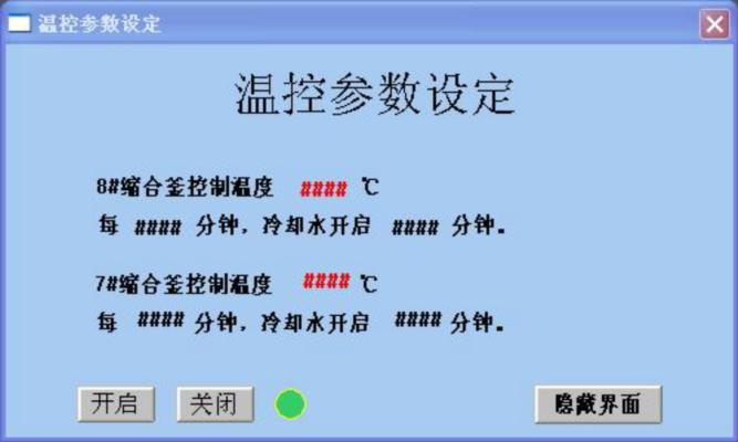 7. 溫度控制:操作員根據(jù)操作工藝設(shè)定好控制溫度,并根據(jù)現(xiàn)場實際溫度控制情況設(shè)定控制時間,點選開啟,指示燈亮進(jìn)入溫控自動流程。