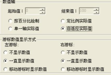 點選歷史數(shù)據(jù)曲線按鈕進(jìn)入歷史數(shù)據(jù)曲線畫面,點選設(shè)置屬性頁按鈕進(jìn)入選擇歷史庫中添加選擇所需觀察的曲線點選,鼠標(biāo)左鍵點住右邊顏色選擇按鈕選擇曲線顏色以便于觀察。點選設(shè)置參數(shù)按鈕進(jìn)入時間選擇界面,選擇所要觀察的曲線的起止時間數(shù)值軸及游標(biāo)值按下圖設(shè)置,點擊確認(rèn),則曲線直觀的反應(yīng)在歷史曲線畫面中,點選畫面XY 軸游標(biāo)能顯示對應(yīng)時間相應(yīng)變量的相應(yīng)值。